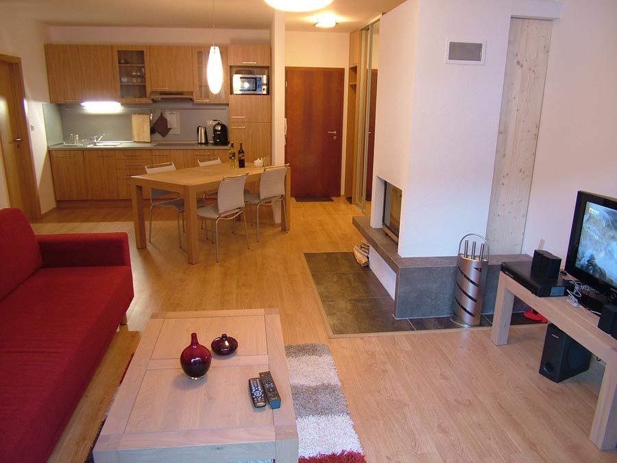Vybavenie: krb, LCD TV, CD+DVD, mikrovlnná rúra, keramická 4 platnička, chladnička, mraznička, umývačka riadu, pressovar. Samozrejmosťou je aj pripojenie na internet. Apartmán má samostatnú lyžiareň s možnosťou ohrevu lyžiarskych topánok, v lete pre horské bicykle resp. golfovú výstroj. Podzemná garáž.