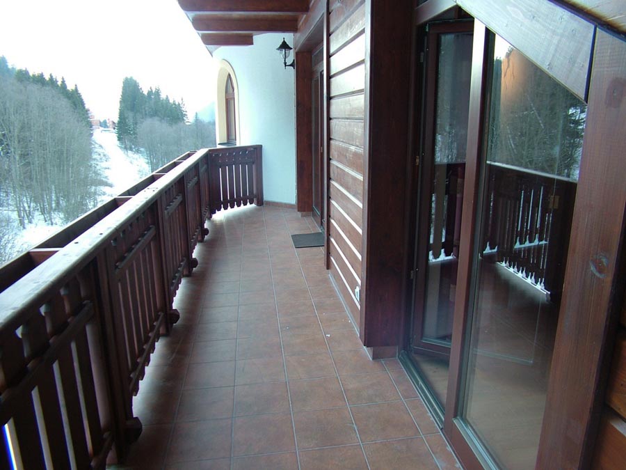 Naše 4 apartmány sú umiestnené práve tu. Nachádzajú sa bezprostredne vedľa seba v samostatnom krídle budovy na 4. nadzemnom podlaží s prekrásnym výhľadom na svahy okolitých lyžiarskych stredísk. Novostavba apartmánového domu bola ukončená v roku 2008.