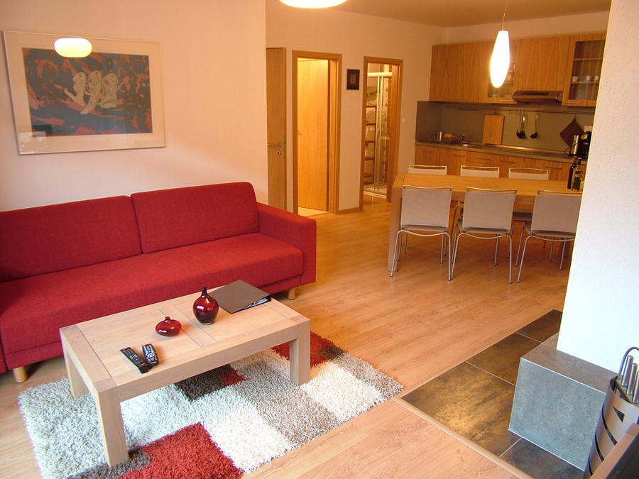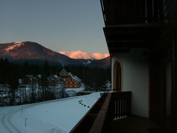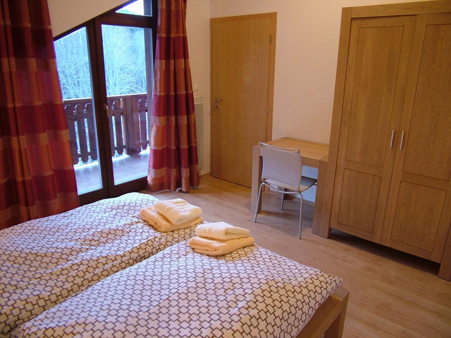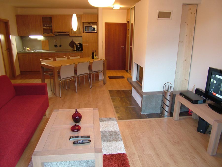 Our 4 apartments are located exactly there. They are placed immediately next to each other in a separate wing of the building on the 4th floor with a beautiful view on the slopes of the surrounding ski resorts. Construction of the apartment house was finished in the year of 2008.